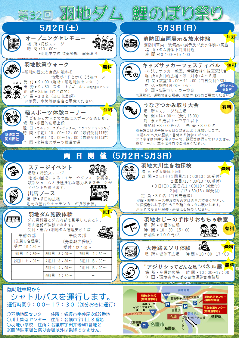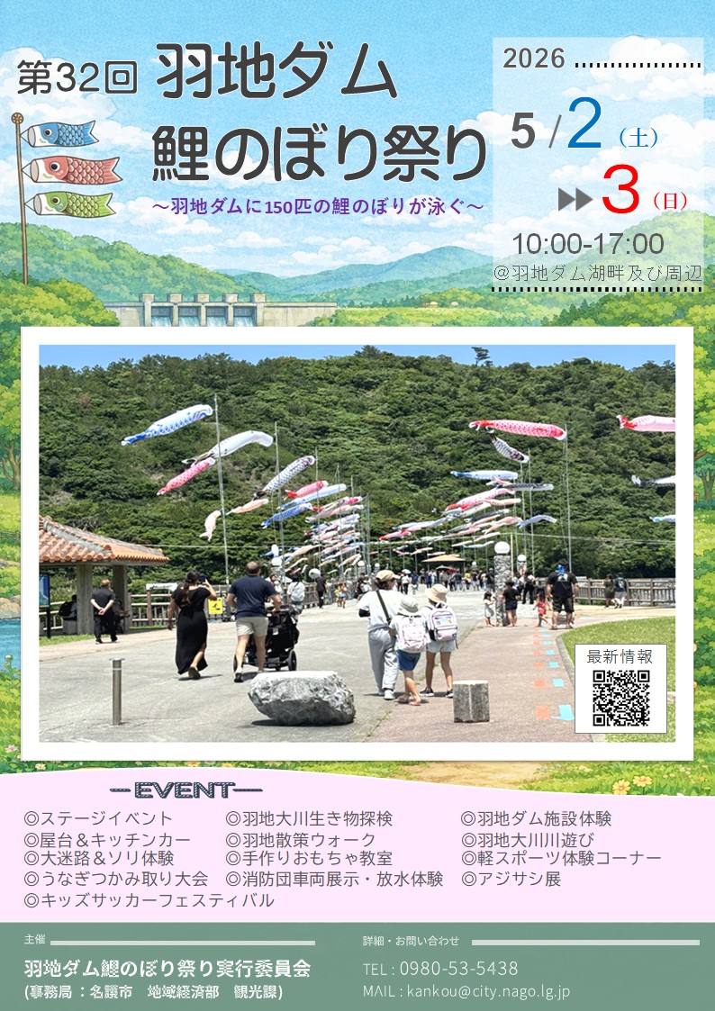 今年も「第32回羽地ダム鯉のぼり祭り」を開催します。