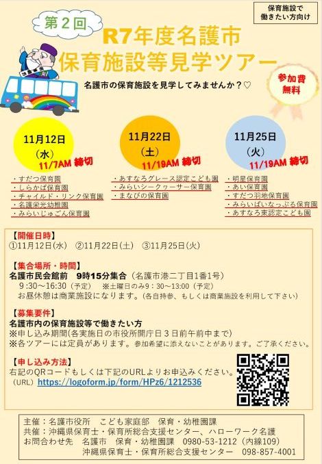 令和7年度 名護市保育施設等見学ツアー(第2回)の開催について