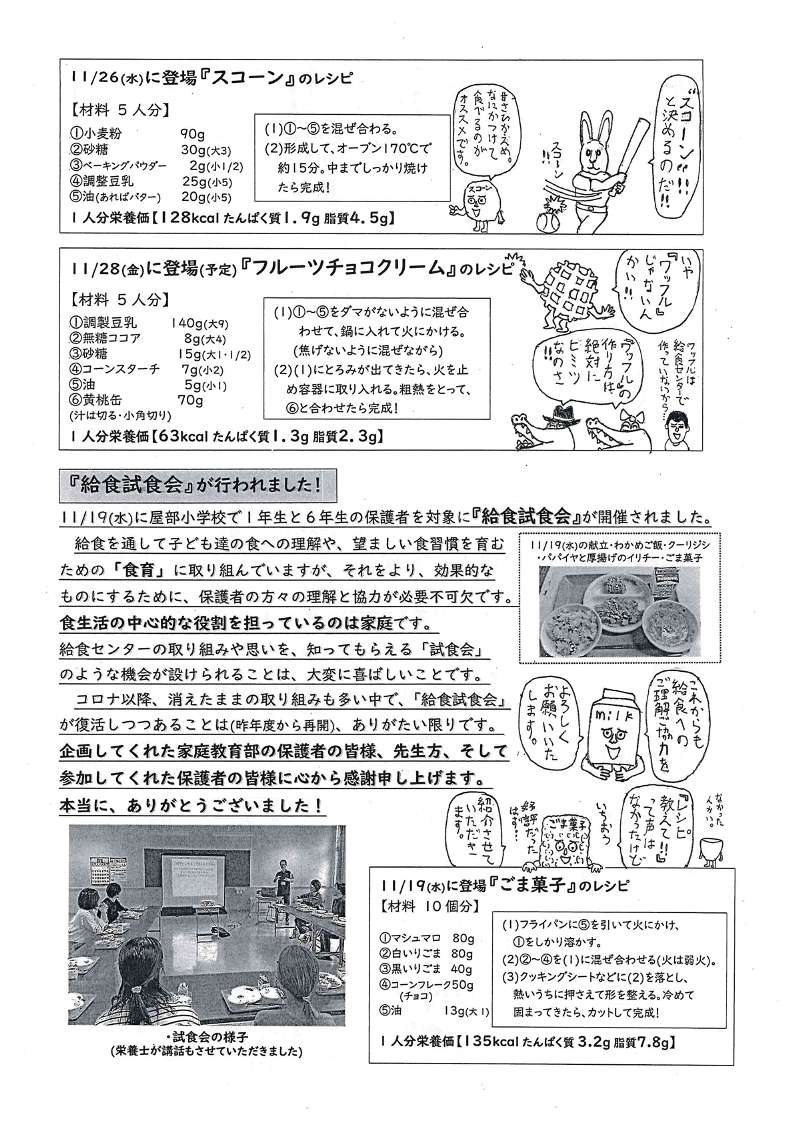 ※過去の食育だよりは屋部学校給食センターの献立表欄からご覧下さい。